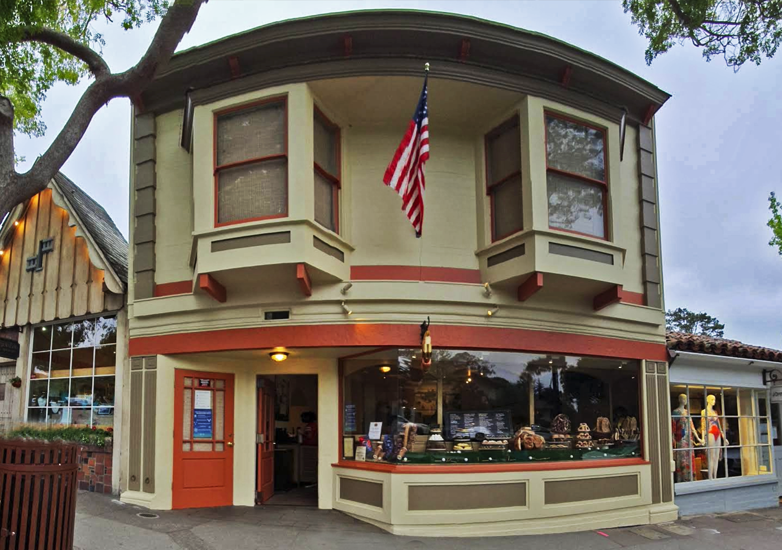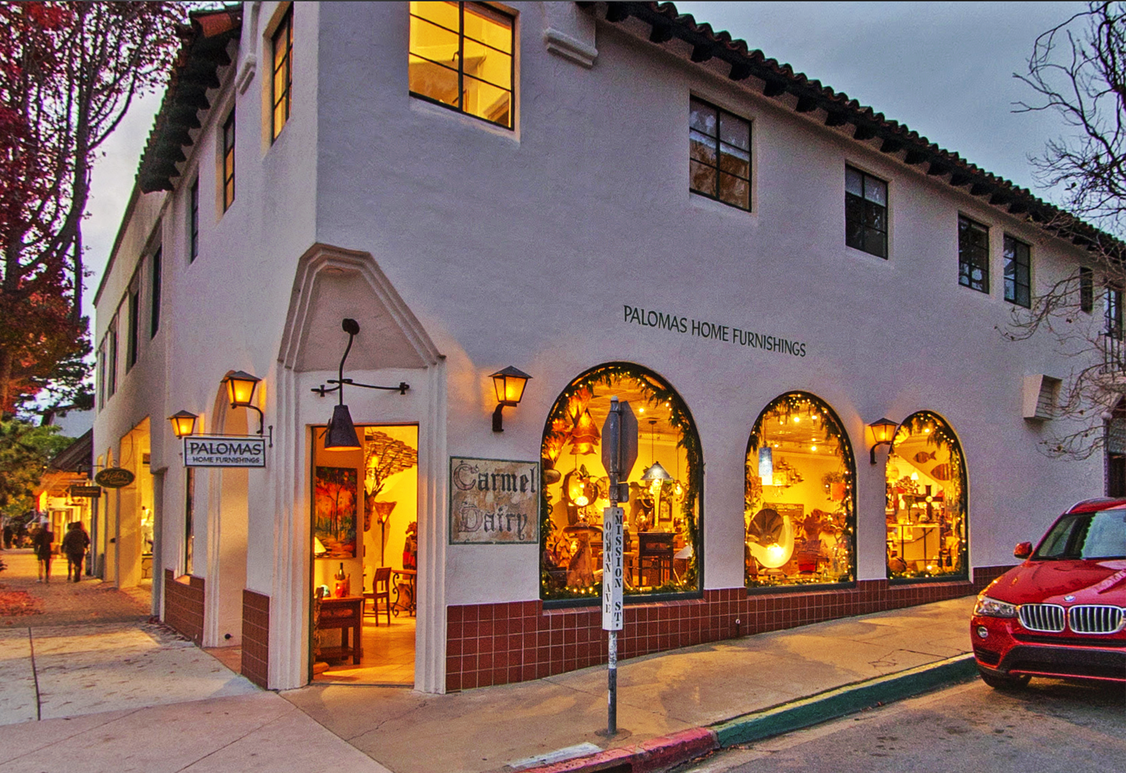 It began as Carmel’s first dairy in 1932. The milk was brought in from Carmel Valley, bottled in the building, and then delivered. The original lamp is over the doorway and the original sign is on the wall next to the doorway.