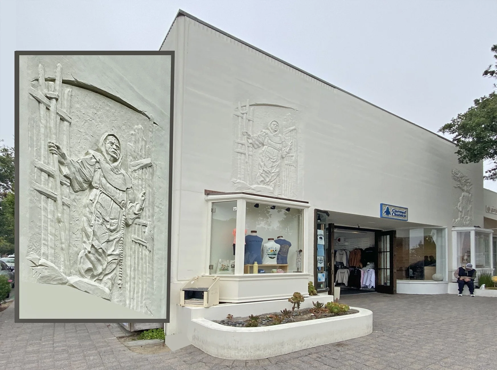 It was built in 1939 as the Bank of Carmel and features a bas-relief by well-known artist Paul Whitman.